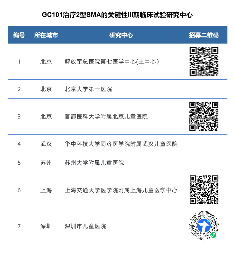 GC101治疗2型SMA的III期关键临床试验全国七家研究中心全面启动