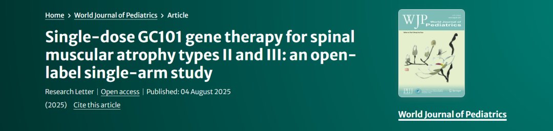 GC101治疗II/III型SMA最新研究成果在国际儿科权威期刊发布